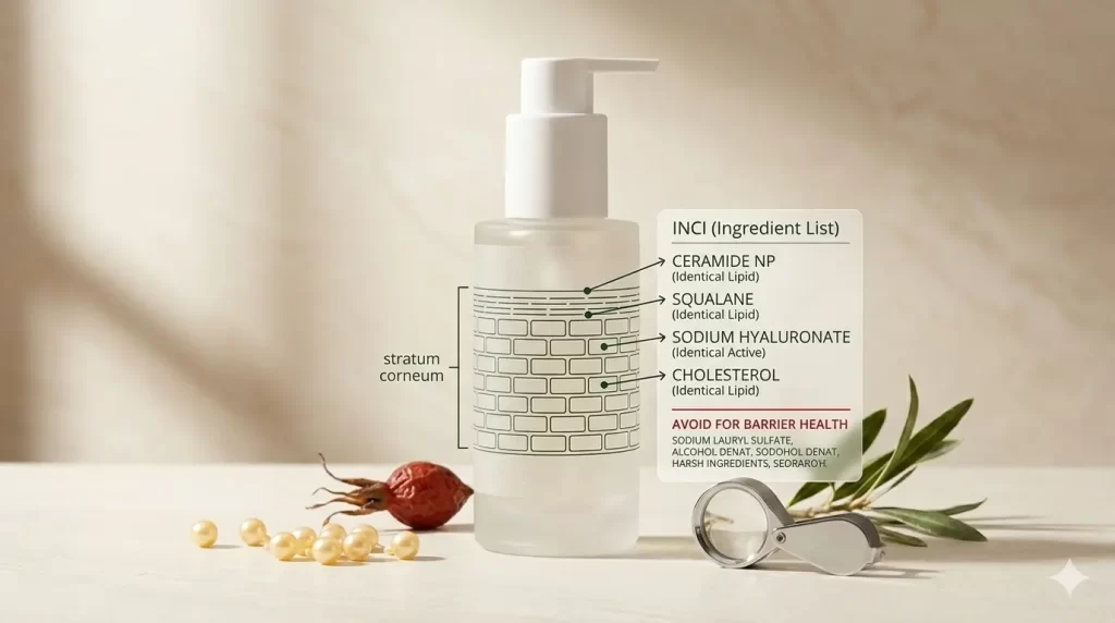 If your goal is to repair your skin barrier, you need to look for Skin-Identical Ingredients. These are substances already found naturally in your skin. When applied topically, your skin recognizes them as “self” rather than “foreign,” allowing for deeper integration and faster repair.